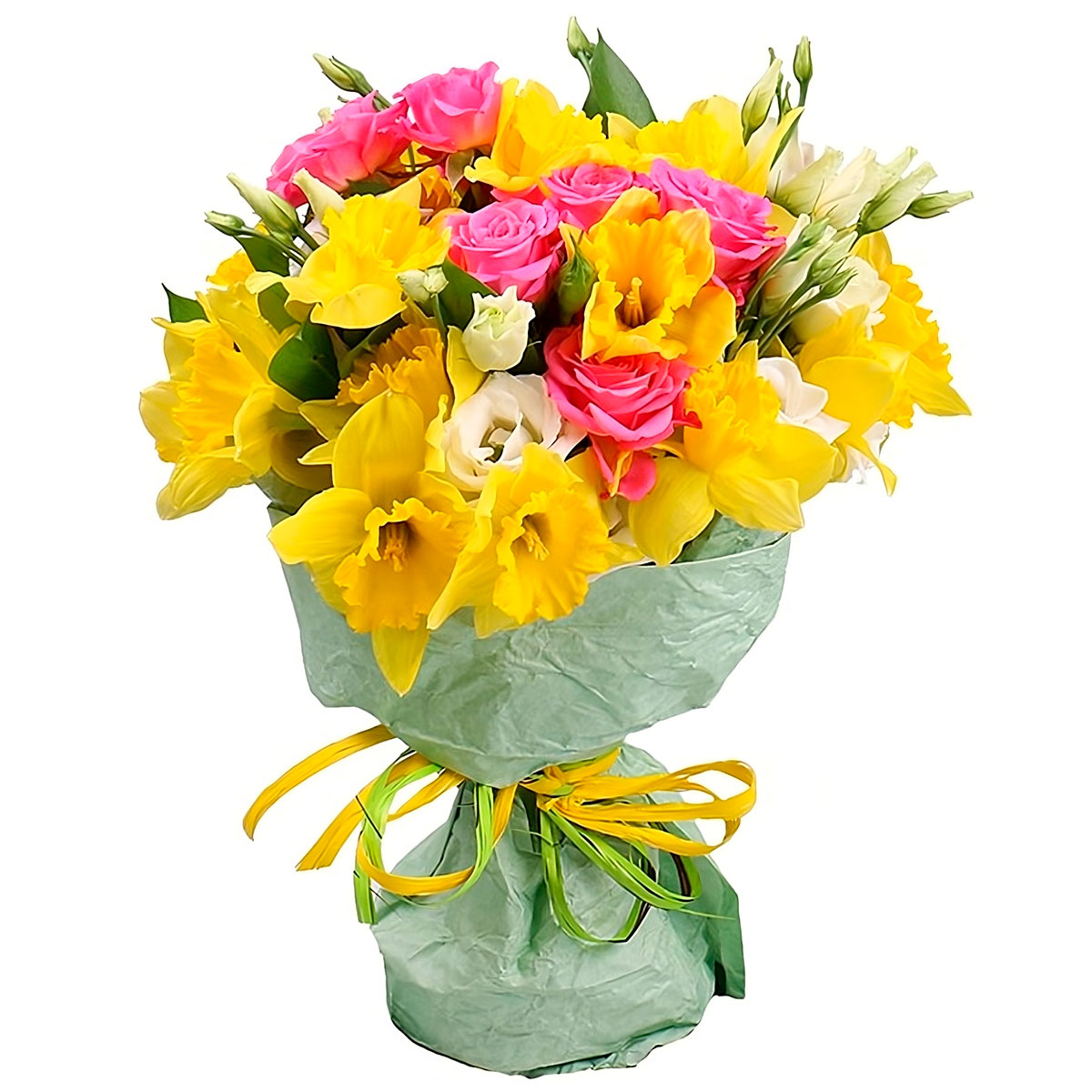 | Состав | Кустовые розы, Нарциссы, Розы, Эустомы |