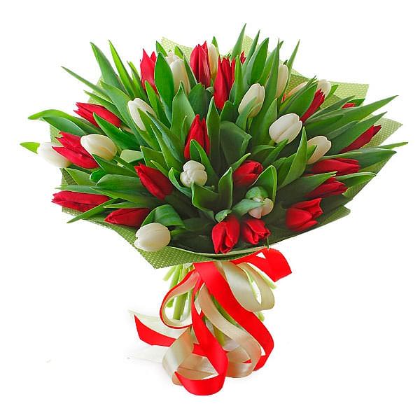 Тюльпан белый, красный.